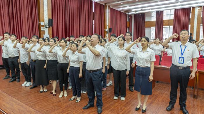 全体参会党员在谭东辉的领誓下,面向鲜艳的党旗,重温入党誓词,牢记初心使命。随后,党委副书记、副院长蒋玉兰宣读了2024年度优秀共产党员、优秀党务工作者及先进基层党组织表彰决定;会上,对23名优秀共产党员、8名优秀党务工作者、6个先进基层党支部予以表彰。