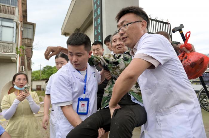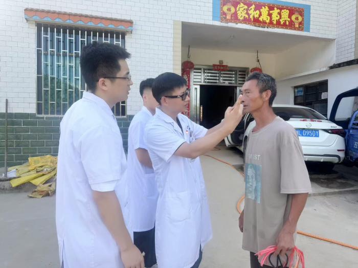 在各个受灾群众安置点,医疗队员们不畏艰难,为灾区群众提供了全面的医疗服务,包括健康检查、疾病诊治、伤口处理等, 同时积极开展卫生保健知识宣传,向受灾群众讲解水灾过后的疾病防治知识、环境消杀注意事项,免费发放了相应的药品。湘南学院附属医院医务部副部长、党员王炯不顾个人安危,带着沉重的医疗设备及药品,多次深入受灾最严重的八面山等危险区域,逐户走访,及时为受伤村民进行治疗;重症医学科副主任医师、党员邓亮飞协同资兴市第二人民医院对受伤灾民进行紧急医疗救治;党员白明喜积极为伤情严重的村民联系直升机进行转诊,为被困群众送去急需的药品物资和医疗救助。在炎热潮湿的环境中,党员们的衣衫被汗水湿透,但他们毫无怨言,以实际行动践行着入党时的誓言。