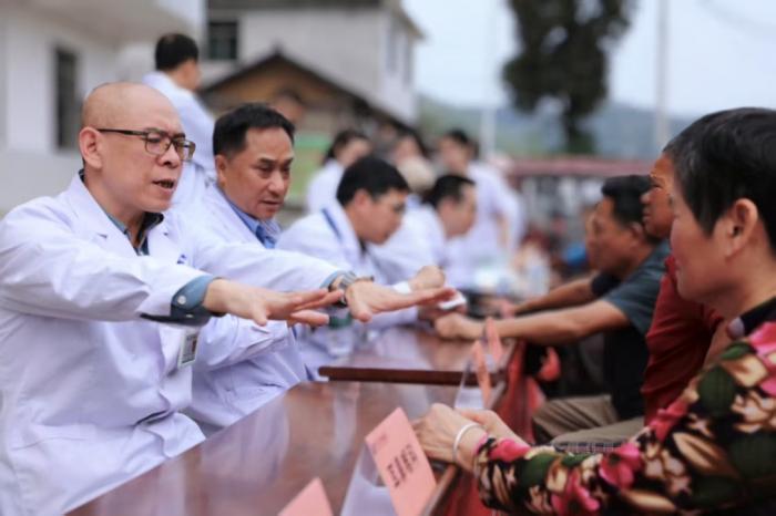 清晨,晨雾尚未消散,一支集结了心血管内科、神经内科、骨外科等8个重点学科的精英的“同心服务队”便已踏上行程。他们沿着蜿蜒的盘山公路,一路奔波,最终抵达海拔 1400 余米的七姊石村。