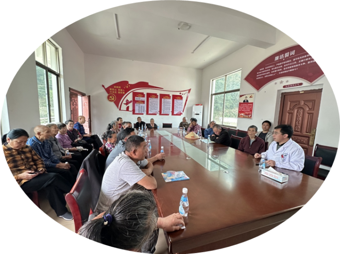 村活动中心前,早早赶来的村民们排起了长队。活动现场,专家们迅速投入诊疗工作,他们耐心地为村民检查身体、测量血压和血糖、调整用药方案、演示肺部保健操、指导村民使用牙线,还为大家发放了药品和健康指导手册。随后,医院农工支部主委李维军还为在场村民们开展了实用的健康知识讲座,给大家传达了国家最新医疗健康相关政策。据统计,此次活动累计接诊158人次,免费发放价值 6800 元的药品及口腔护理用品。
