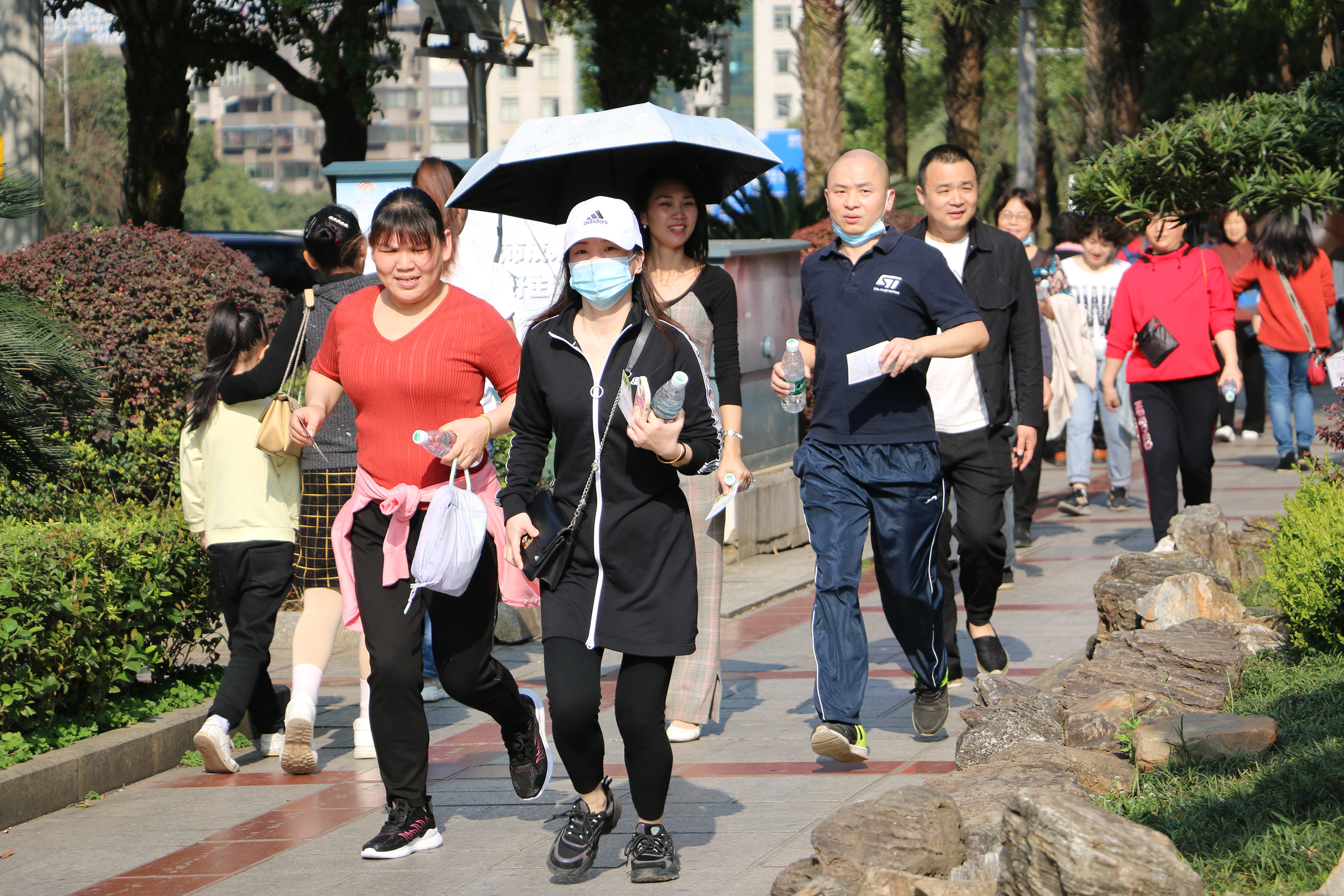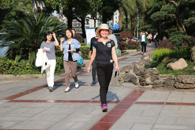 早上8点半,徒步队伍随着“出发”口令,以湘南学院附属医院门诊前坪作为起点,穿过龙泉路、香雪路等路段,到达终点站南塔公园,全程约3公里。活动中,有三五成群齐步走的,也有你追我赶相互较劲的,大家尽情呼吸着新鲜空气,迈着坚定的步伐,满怀百倍的信心,团结一致,向着终点前进。一路上,欢快的笑声此起彼伏。