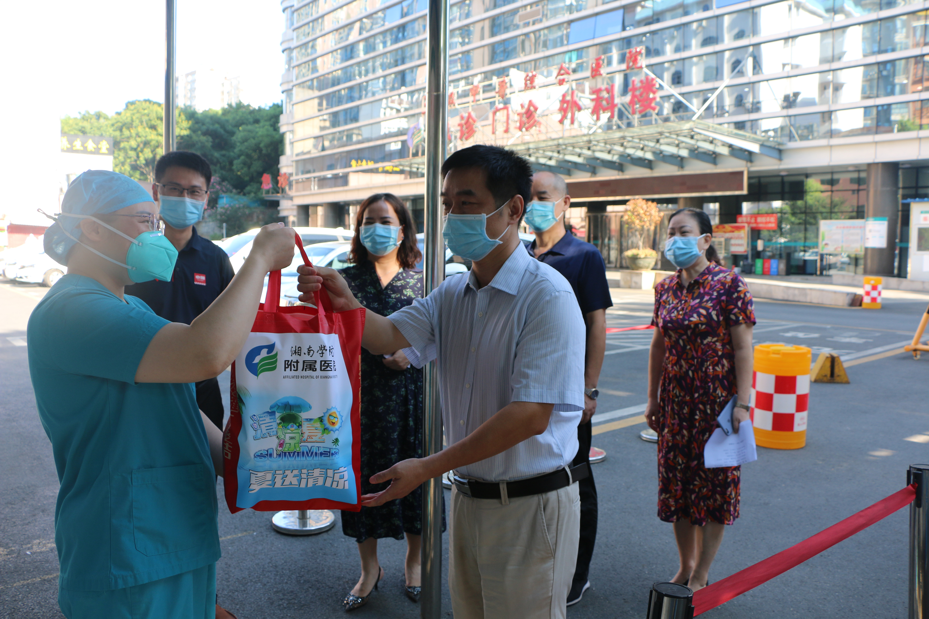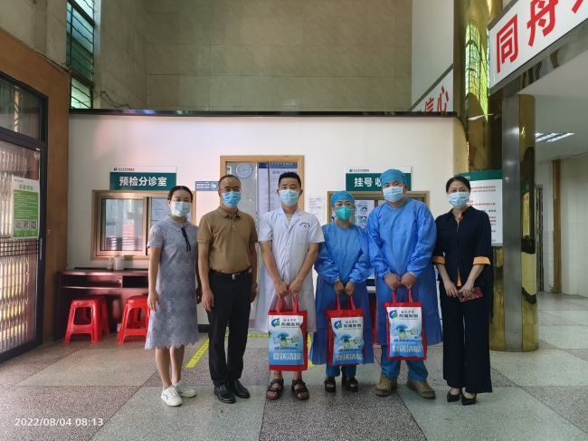 近期持续高温天气,“烤”验着医院工作人员,也牵动着医院领导的心。为进一步做好防暑降温工作,保障奋战在一线的职工身体健康、平安度夏,这天一大早,院领导分组走访慰问了120急救中心、核酸采样室、发热门诊、疫情防控岗、保安岗亭等,向他们送去夏日的“清凉”与暖心的问候,叮嘱大家在坚守岗位的同时,增强自我保护意识,注意劳逸结合,避免发生高温中暑事件。随后,医院工会将防暑降温慰问品送到了全体一线职工的手中。