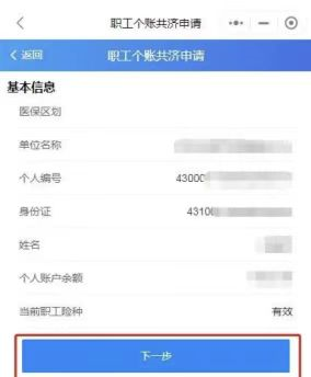 第二步:确认参保信息,在个人账户有余额且参保状态正常的情况下,点击“下一步”。