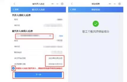 第三步:输入被绑定人身份证号,选择共济时间,勾选承诺,点击下一步,绑定成功。