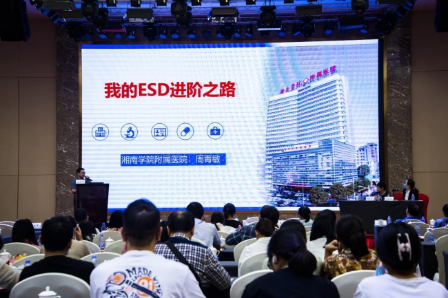 在随后的学术讲座中,湖南省人民医院杨瑜明教授,中南大学湘雅二医院刘德良教授,中南大学湘雅医院刘小伟教授,中南大学湘雅三医院王晓艳教授,湖南中医药大学附属宁乡人民医院王德良教授,湘南学院附属医院胡久叶教授、彭锦兰副教授、周青敏主治医师,郴州市第四人民医院彭昌能副教授分别对ERCP在胰腺疾病中的应用、肝硬化门静脉高压消化道静脉曲张内镜下组织粘合剂注射治疗专家共识、EUS引流胰周积液的应用规范和进展、GERD的新型微创治疗方案、幽门螺旋杆菌诊治进展、ERCP联合胆胰内镜的应用、特殊人群乙肝抗病毒治疗、ESD进阶之路、内镜下息肉切除术及并发症处理等做了精彩的学术报告,现场气氛活跃,嘉宾主题发言在阵阵掌声中结束。