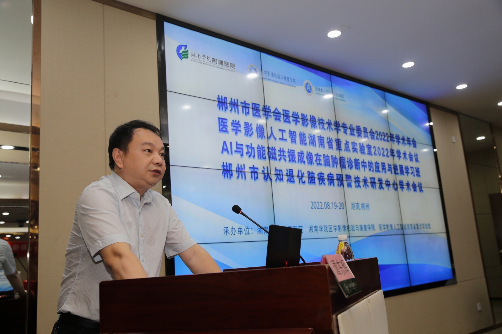 本网讯(通讯员 彭琛 田华)2022年8月19日-21日,由郴州市医学会医学影像技术专业委员会主办,湘南学院附属医院、湘南学院医学影像检验与康复学院、医学影像人工智能湖南省重点实验室承办的郴州市医学会医学影像技术专业委员会2022年学术年会、医学影像人工智能湖南省重点实验室学术会议、AI与功能磁共振成像在脑肿瘤诊断中的应用与进展学习班、郴州市认知退化脑疾病预警技术研发中心学术会议顺利召开。郴州市医学会会长王东,湘南学院组织部常务副部长王志强,郴州市医学会副会长、湘南学院附属医院党委书记谭东辉等出席会议,湘南地区医学影像技术精英骨干百余人参会。