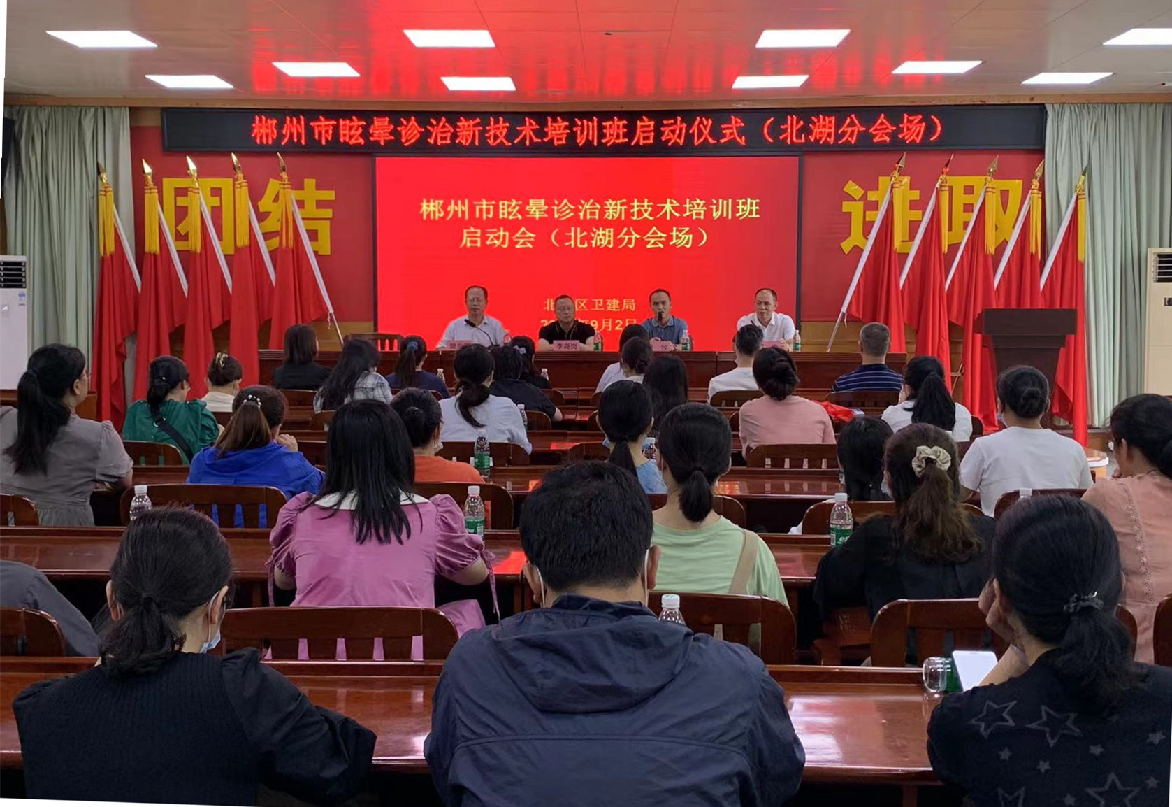 据悉,本次眩晕诊治新技术培训班将持续2个月时间,在郴州市苏、北两区及九个县市区设立多处分会场,先后开设专场讲座53场,预计为两千余名基层卫生技术人员讲授眩晕治疗新技术。