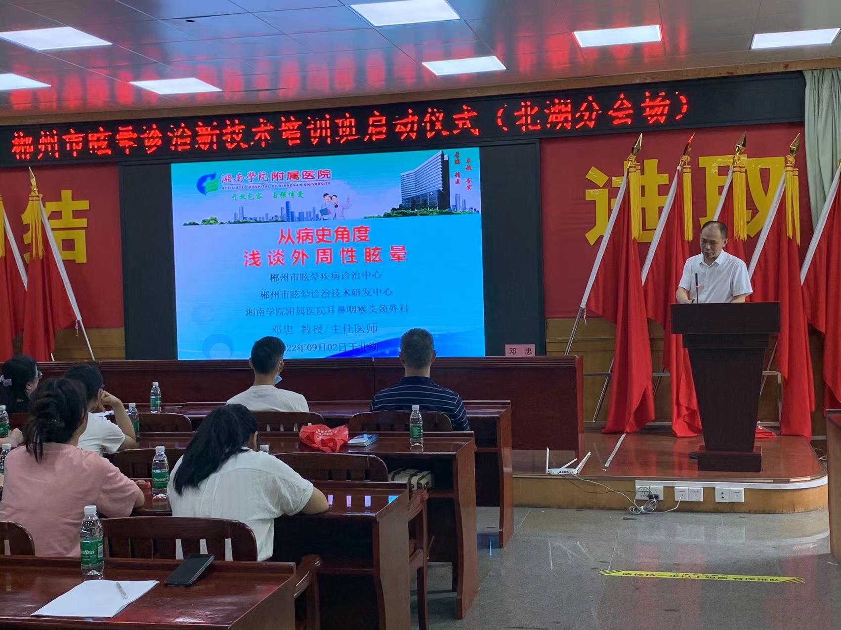 本网讯(通讯员 陈宝)9月2日,由郴州市卫健委主办,湘南学院附属医院承办的2022年郴州市眩晕诊治新技术基层人员培训班开班仪式在人民街道社区服务中心正式启动。郴州市卫健委基层卫生科科长李尧岗,湘南学院附属医院副院长秦牧,北湖区卫健局副局长樊东晖出席开班仪式。