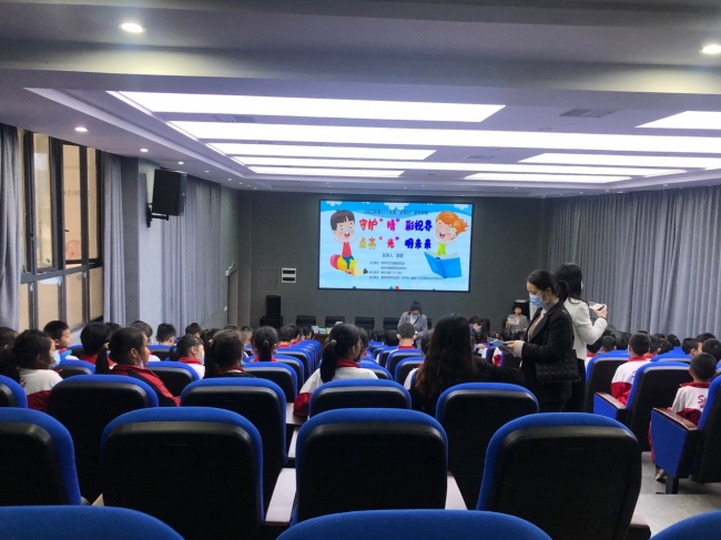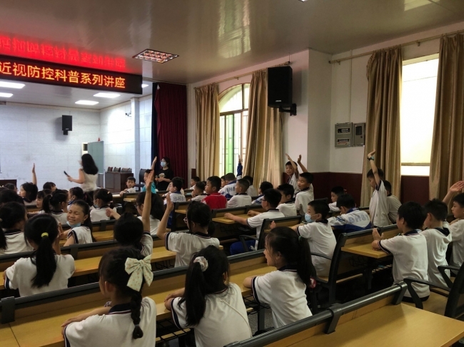 活动中,湘南学院附属医院眼科专家通过图文并茂、生动形象的授课方式,向同学们介绍了眼睛基本结构,详细讲解了什么是近视、近视形成的原因以及近视的危害等内容。同学们怀揣着好奇认真听讲,并积极踊跃地回答专家的互动小问题。疾控中心专家结合小学生活泼爱动的特点,指导同学们增强爱眼护眼的意识,通过赠送近视防控笔记本以及近视防控宣传单的方式,让同学们在日常的学习中主动培养爱眼护眼的意识。