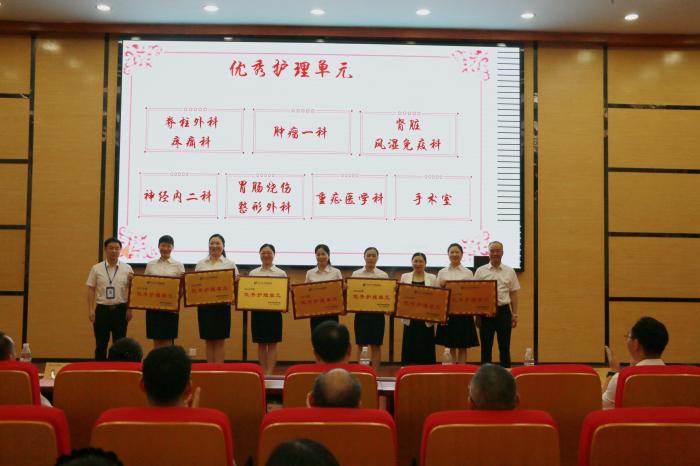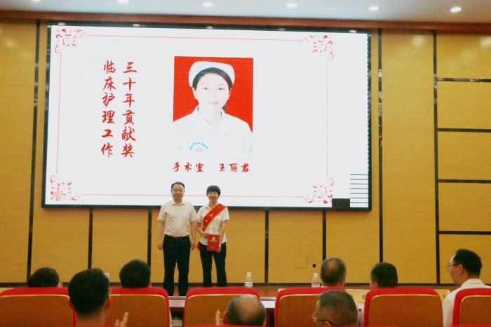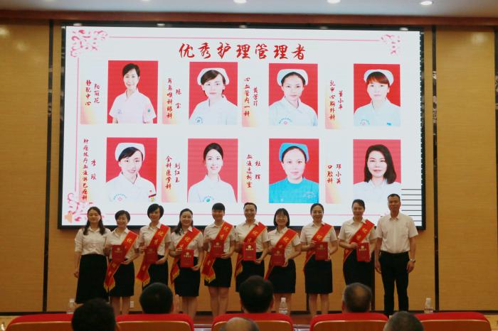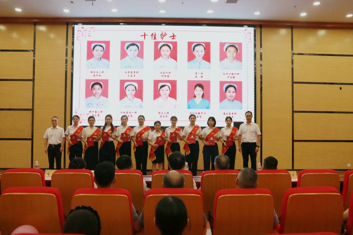 党委委员、副院长何勇宣读表彰决定。医院领导班子成员分别为 “2024年度十佳护士”“2024 年度优秀护理管理者”“2024年度优秀护理单元”“30 年护龄奉献奖”分发了奖励证书。