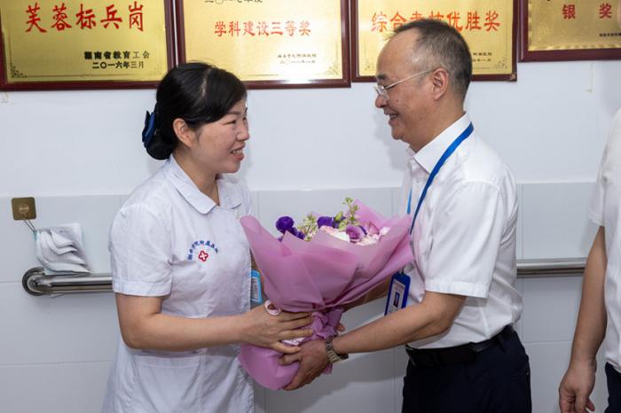 当天上午,院领导分组对临床一线护理人员进行了走访慰问,并向她们送去了美丽的鲜花与暖心的节日祝福。