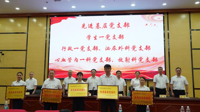湘南学院附属医院重症医学科青党员医生李敏,心血管内一科党支部书记廖昆作为优秀共产党员代表、先进基层党组织代表依次发言。他们表示,将进一步发挥党员先锋模范带头作用,立足岗位、勇担使命,以更高标准、更实作风投身医院高质量发展新征程。