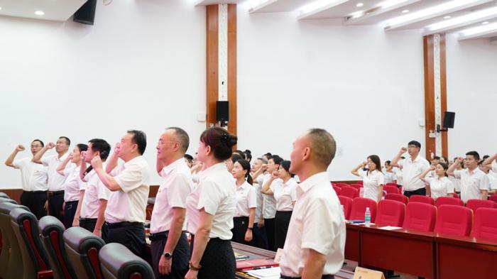 在谭东辉的领誓下,全体参会党员面向党旗,重温入党誓词,铿锵誓言彰显忠诚担当。随后,党委副书记、副院长蒋玉兰宣读了2025年度先进基层党组织表彰决定及第二届“党建引领 文化铸魂”擂台赛获奖通报。会上,对5个先进基层党支部以及第二届“党建引领 文化铸魂”擂台赛获奖人员予以了表彰颁奖。