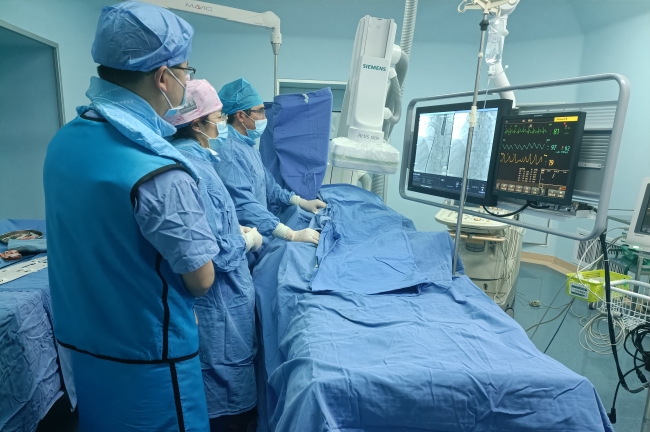 经过医务人员的详细讨论,提出采用介入封堵的手术方式为陆先生进行治疗。相比于传统的外科修补术,介入封堵术是一种微创手术,不用开刀,医生通过穿刺大腿根部的股静脉,将一根导管沿着血管走形送入心脏右心房,穿过未闭卵圆孔至左心房,释放封堵器进而永久性关闭卵圆孔。这种手术方式,创伤小,并发症少,术后第二天患者就可以自行下床活动。