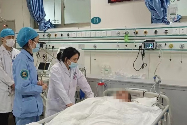郴州市的陈大叔今年52岁,因劳累后突发胸闷胸痛1小时,在家里自行口服“速效救心丸”无缓解后,前来我院就诊。急诊内科医生接诊陈大叔后立即予以开启胸痛绿色通道,快速完善心电图、血清肌钙蛋白等检查,心电图显示ST段抬高,陈大叔被确诊为“急性下壁+右室ST段抬高型心肌梗死”。“急性心肌梗死这是心脏病中极为危重的疾病,当时情况相当紧急,刻不容缓,患者随时都有发生心跳骤停的可能。” 急诊科主治医生李淑美介绍说,“静脉溶栓、冠脉介入手术都是为急性心梗患者开通血管的治疗方案,只有快速开通闭塞的血管,心肌细胞才能重生。”