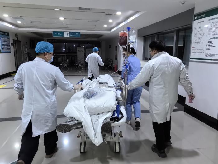 还没等医护人员喘口气,120 医生的呼喊声再次响起:“外伤导致脾破裂患者!”“置管、导尿、备皮、抽血、准备输血、做 CT……” 邓亮飞一连串的指示下达,如同战斗的号角。急诊科的医护人员立刻进入战斗状态,大家分工明确、配合默契,在紧张的氛围中,每一个操作都有条不紊。在急诊医护团队的紧密配合下,所有抢救操作在半个小时内一气呵成,患者被顺利推进手术室。此时,时针已指向晚上 10 点 30 分,邓亮飞主任忙得连晚饭都没顾得上吃,刚想喝口水歇一歇,120 医生又同时推进抢救室两位重症患者,一个是急性酒精中毒,另一个是脑血管意外。“准备气管插管,上呼吸机…… 镇静药、打气、固定、吸痰!” 医护人员再次投入紧张的抢救工作。等忙完这一切,邓亮飞又仔细巡视了一遍病房内的所有患者,确保他们病情稳定后,才喝了口水,接着迅速坐在桌前开始书写病历。等到完善好病历记录,已经是凌晨三点钟了。